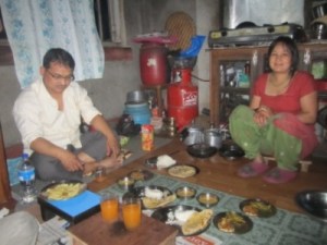 Am Abend waren wir noch bei Prem, den Volker schon seit mehr als 20 Jahren kennt und wenn er hier ist immer wieder besucht. Er wohnt mit seiner Frau und seinen zwei Kindern in einem kleinen Zimmer. Der Sohn, mittlerweile 19, hat seit kurzem im selben Haus ein eigenes Zimmer zum Schlafen. Volker hat nicht zu viel versprochen: es gab ein fantastisches Dhal Bat.