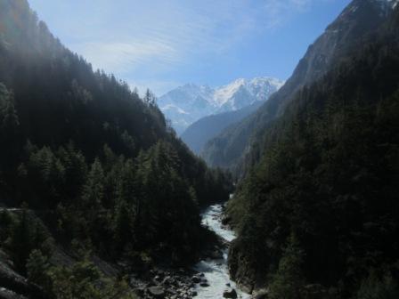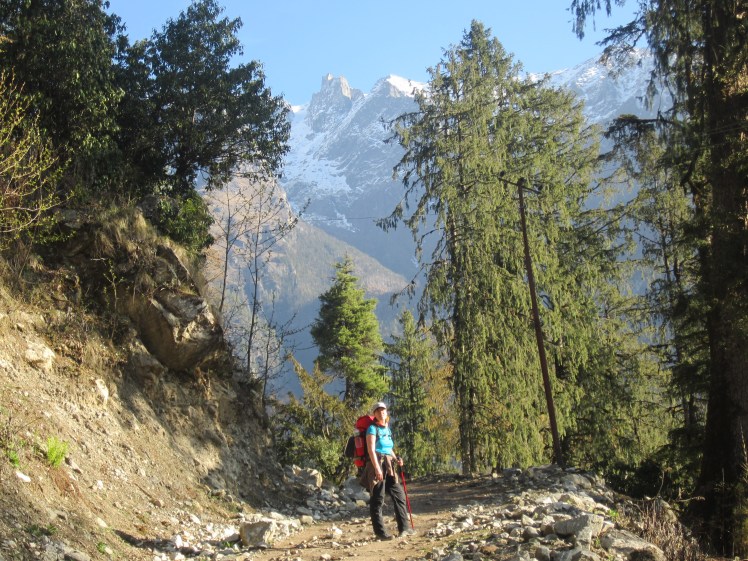Heute ist Ostersonntag und wir sind nach vier Tagen wandern in Lower Pisang auf einer Hoehe von 3200 m angelangt. Ja, die magischen 3000 Hoehenmeter und die letzten Meter bin ich nur noch gekrochen. Die Hoehenangaben der Orte spiegeln ueberhaupt nicht das wieder, was man wirklich geht. Bisher ging es immer entweder rechts oder links eines Flusses, der in einem tiefen Tal liegt, entlang. Und immer wieder muss dieser ueberquert werden, was natuerlich bedeutet, dass man jedes mal erst runter ins Flusstal und auf der anderen Seite wieder hoch muss. Heute war es besonders schlimm. Der Wind weht, der Schweiss laeuft. Und dann habe ich mir auch noch den Hals verrenkt, da direkt vor uns Annapurna II (7937 m) und hinter uns der Namun Ihaniyang (5560 m) stand und ich die ganze Zeit fasziniert hochschauen musste. Aufsteigend aus dem Flusstal ragen diese Berge schneeweiss in den stahlblauen Himmel. Das entschaedigt fuer die Strapazen.