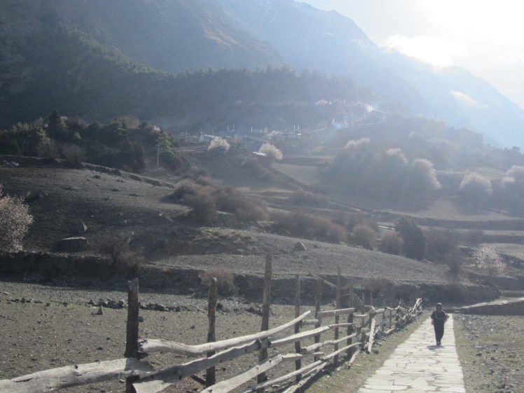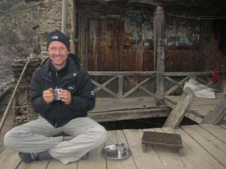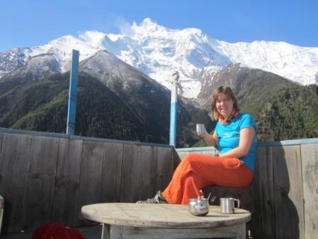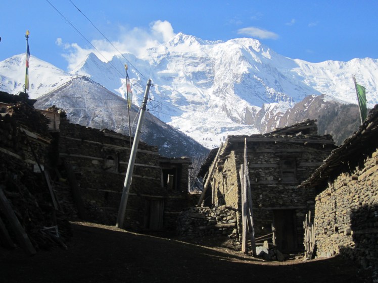 Da ich nicht so gut mit der Hoehe zurecht komme, haben wir beschlossen, uns heute nur im Schneckentempo die vielen Stufen nach Upper Pisang, das auf der anderen Flussseite gelegen ist, hochzuschrauben. Der Ort ist sehr urspruenglich. Dort leben hauptsaechlich die buddhistischen Gurung, der tibetischen Kultur sehr aehnlich. Wir haben eine Lodge gefunden mit einer schoenen Terasse und Blick auf Annapurna II (7937 m), Annapurna IV (7525 m), Tilicho Peak (7134 m). Nepal 167In dem Dorf gab es eine wunderschoene Gumpa zu besichtigen Dieses Kloster ist vor einigen Jahren neu aufgebaut worden. Alle Familien haben sich daran beteiligt, entweder mit Geld oder mit 54 Arbeitstagen. Am Nachmittag versammelten sich die Maenner des Dorfes zu einem Bogenschiesswettbewerb, teilweise in Tracht. Zu guter letzt hat Volker noch die Lodge entdeckt, in der er vor 23 Jahren abgestiegen ist: das „Star-Hotel“. Es wird derzeit umgebaut, wir konnten aber mit der Besitzerin bei einem Tee ueber alte Zeiten sprechen.Nepal 171