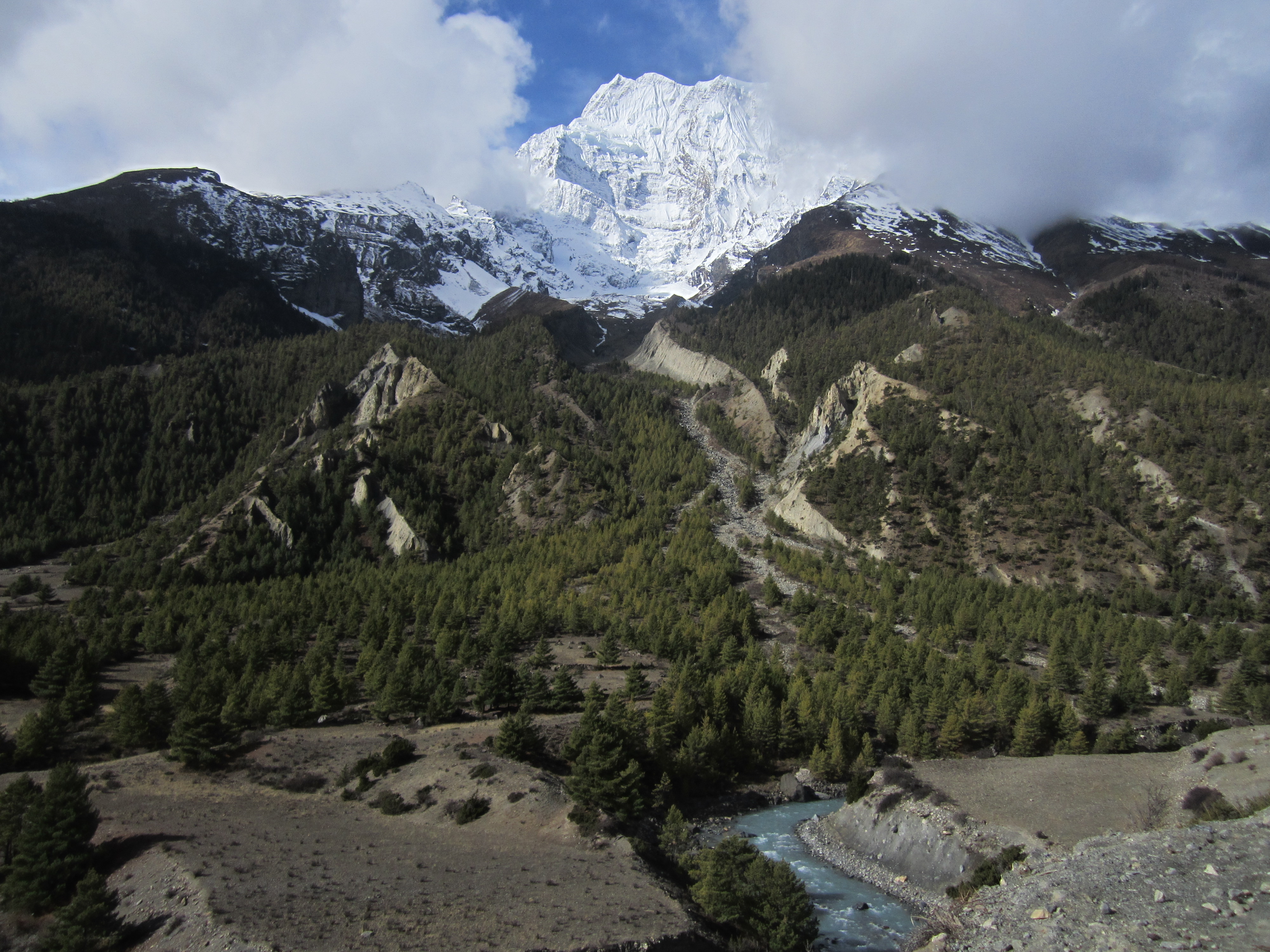 Es ist schon interessant, was man auf so einer Tour fuer Menschen trifft. Da ist das Paerchen aus New York, das Wohnung und Job aufgegeben hat, alles Hab und Gut bei ihren Eltern in L.A. in die Garage gestellt hat und nun erst mal reist, um sich dann einen Job in der Entwicklungshilfe zu suchen. Dann die Gruppe von Russen, die sich mit 9 Traegern durch die Wildnis schlagen zu einem Basecamp, wo sie letztes Jahr 2 Freunde verloren haben. Sie wollen dort eine Gedenktafel aufstellen. Ein israelisches Paar moechte die Umrundung in 7 Tagen durchpeitschen, da nicht mehr Zeit ist. Eine Australierin ist alleine unterwegs, da ihr Mann lieber Golf spielt. Man sitzt abends zusammen am Kamin und dann trifft man sie alle irgendwo wieder. Alle gehen ja die gleiche Route. Nur die Israelis treffen wir nie wieder. Die sind schon weit weg.
