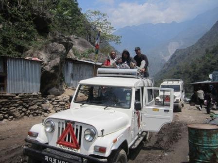1. Tag: Kathmandu – Dumre (mit Bus) – Bhulbule (mit Bus) – Jagat, 1300 m (mit Jeep)