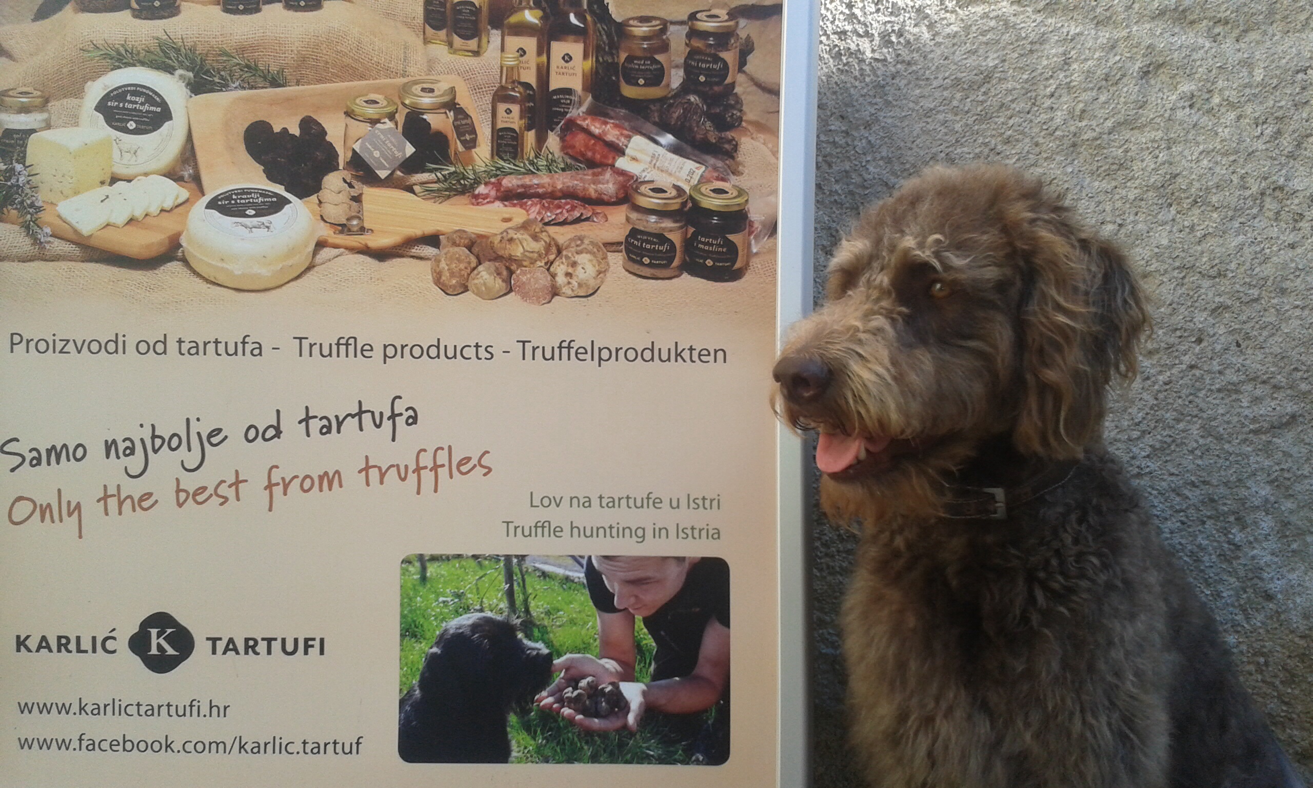 Wir machen ja seit einiger Zeit schon „Kleinobjektsuche“ und er findet mittlerweile zuverlässig „Zitrone“ (Zitronenaroma in einem kleinen Röhrchen). Und „Mandel“ klappt auch schon immer besser, da sollte „Trüffel“ doch auch kein Problem sein. Leider ist die Trüffelsuche in Deutschland verboten. Aber vielleicht kann er ja hier in Kroatien anheuern.