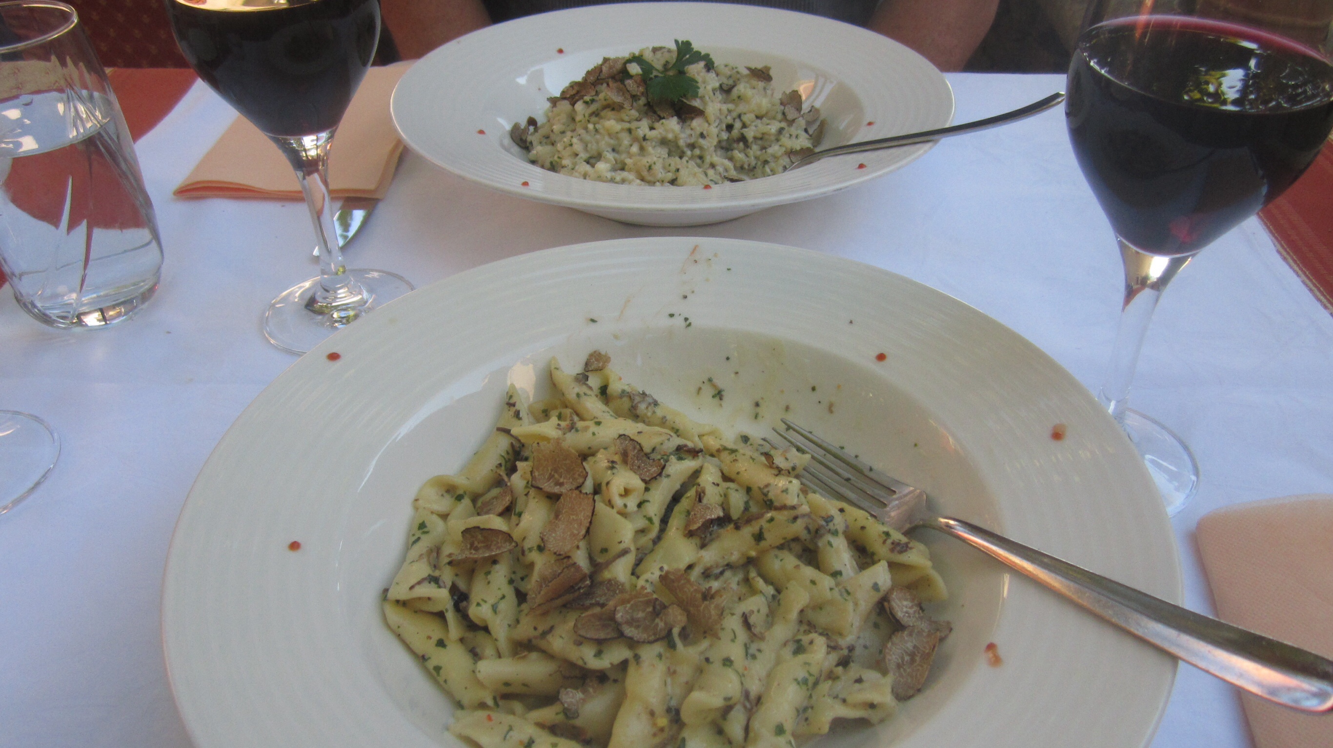 Diesmal wollten wir auch mal das Hinterland erkunden, „die ursprünglichere Toskana“ haben wir gelesen. Es gibt eine Weinstraße, eine Olivenölstraße und natürlich den berühmten weißen Trüffel! Diese kleine Knolle hat einigen hier zu großem Reichtum verholfen. Der „Trüffelkönig“ Giancarlo Zigante steht im Guinness Buch der Rekorde, seine Hündin Diana fand einen 1,3 kg schweren Trüffel. Ihm wurden 10000 Euro dafür geboten, aber er machte ein großes Trüffelfest. Das klang alles sehr interessant und möglicherweise haben wir nun endlich einen Job für Bobby gefunden.