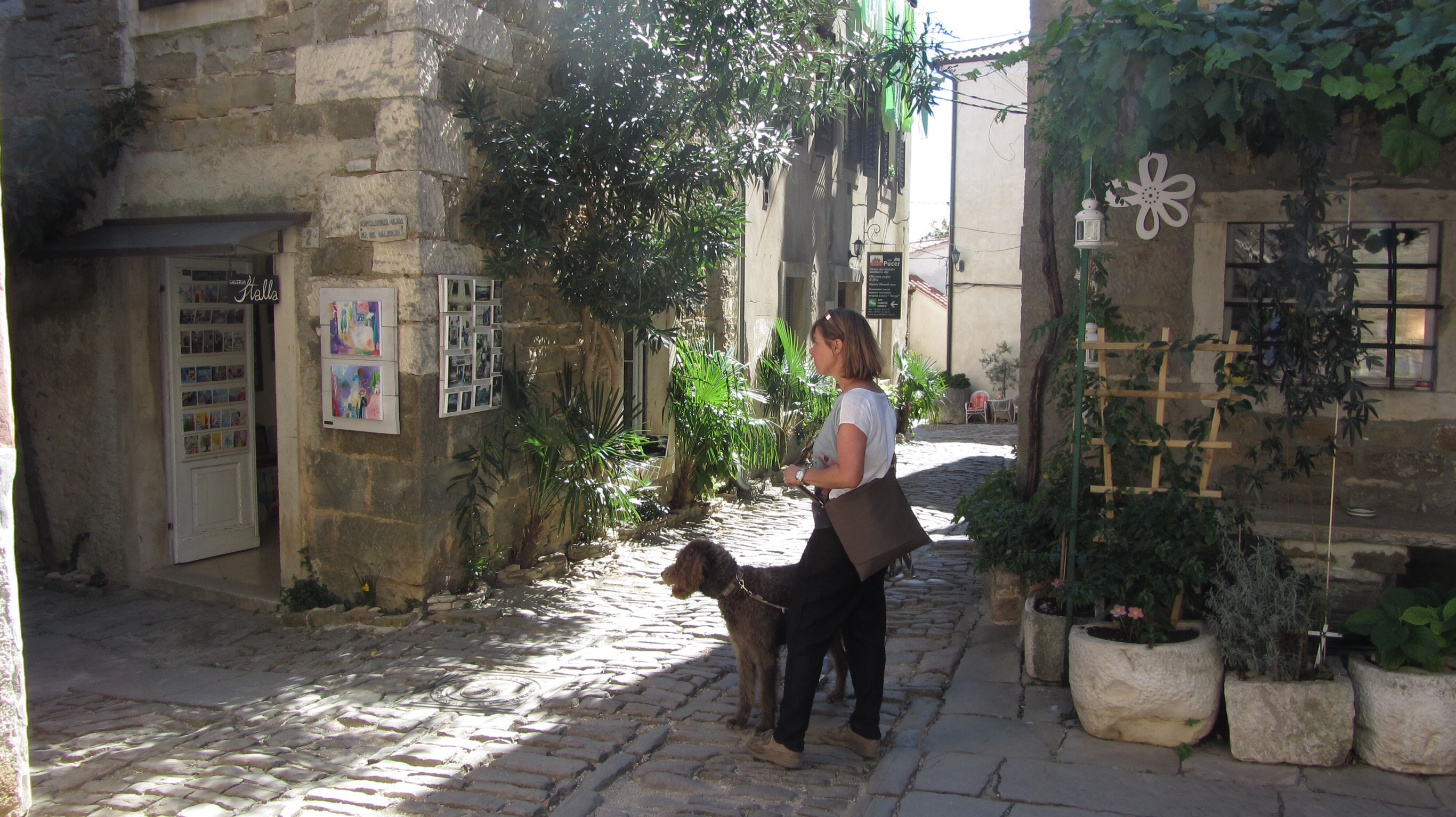 Unsere Tour ins Landesinnerer führte uns erst nach Groznian, einem kleinen Örtchen auf einer Bergkuppe. Hier hatte in den 60er Jahren die Jugoslawische Regierung eine richtig gute Idee gegen die Abwanderung aus den kleinen Dörfern in die Städte. Nachdem nur noch 20 Bewohner in Groznian wohnten, wurden die Häuser zu einem symbolischen Preis an Künstler verkauft, die die Häuser sanierten und sich dort niederließen. Mittlerweile wohnen wieder 200 Menschen hier und es gibt rund 50 Galerien und Ausstellungsräume.
