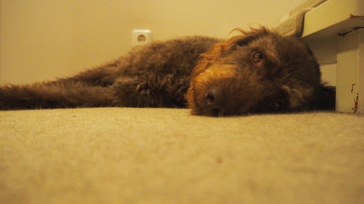 Unser Bobby: Dem Welpenalter entwachsen, veränderte er sein Aussehen. Er wurde zu einem langbeinigen, starksigen Teenager, der seine Energie nicht unter Kontrolle hatte und allen seine unbändige Stärke zeigen wollte. Sein Fell wuchs in alle Richtigen und war eine stumpfe Mischung aus Pudel Haar und Labrador Fell gemischt mit Drahthaar. Kurz: ein ungepflegter Zausel, der unter Größenwahn litt.