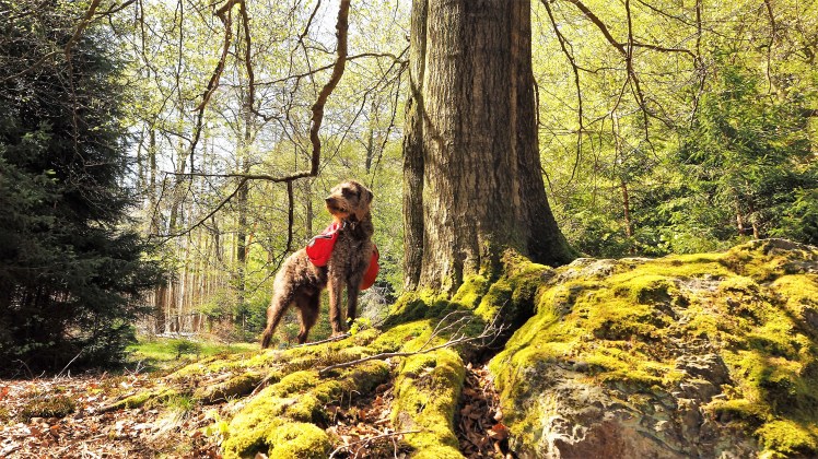 Und was soll ich sagen: Test bestanden! Bobby bewegte sich absolut sicher. Auch die Breite des Rucksacks bereitete ihm keine Probleme. Unwegsames Gelände, Geröll und sogar eine Bachdurchquerung meisterte er tadellos und mit einer Ruhe, die uns begeisterte.