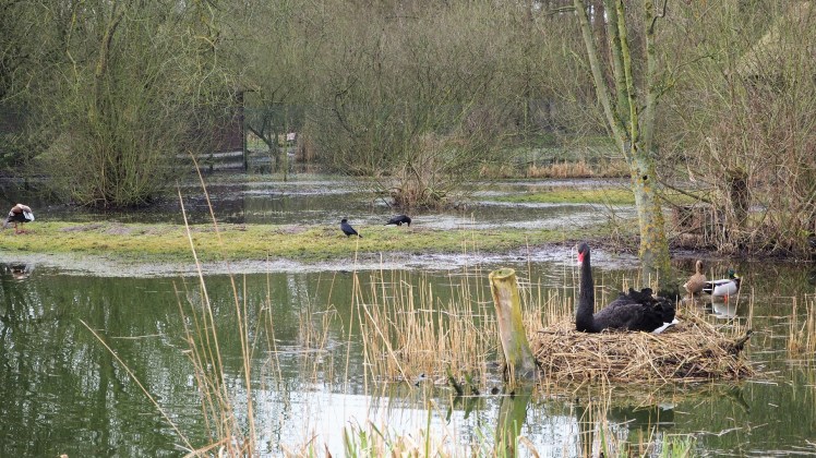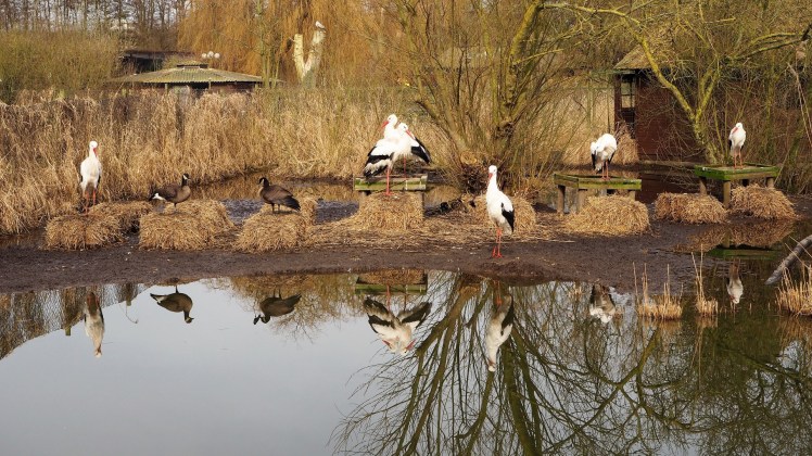 Ein kurzer Check, meine Schulter hatte dem Leinenruck standgehalten. Aber Bobby war nun völlig aus dem Häuschen. Wir beschlossen, uns ruhigeren Gesellen zu widmen und schauten uns die Uhus und Eulen an. Das beruhigte auch Bobby wieder ein wenig, so dass wir danach noch ohne weitere Zwischenfälle die schwarzen Schwäne auf ihrem Nest und eine Storchkolonie beobachten konnten.