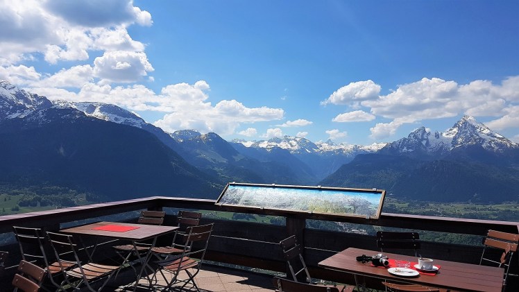 Ja, ich wollte unbedingt noch einen beeindruckenden Blick, ein tolles Foto. Ich gebe es zu. Also fuhr ich an diesen Ort. Ich startete an der Dokumentation Obersalzberg. Wegen Bobby verzichtete ich auf eine Besichtigung und steuerte gleich den Carl von Linde Weg an. Dieser Höhenwanderweg ist ein Spaziergang auf gut sechs Kilometern mit etlichen Einkehrmöglichkeiten. Vielleicht hätte ich mich auch gar nicht für diese Wanderung entschieden, wenn ich nicht in der Tourbeschreibung vom Restaurant „Windbeutelbaron“ gelesen hätte. Da musste ich hin!
