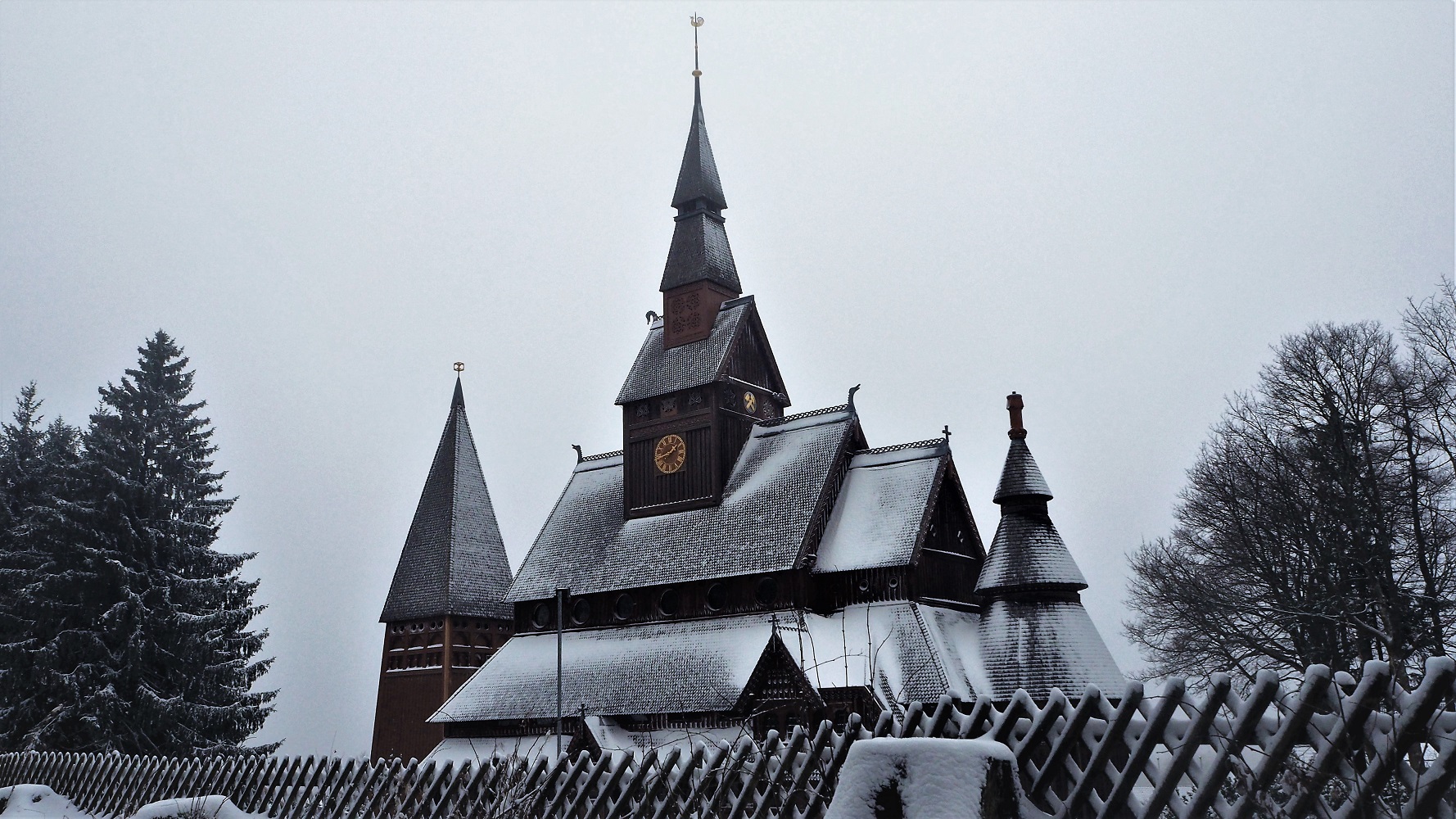 Die Landschaft in Nebel und Schnee gehüllt wähnte uns fast in Lappland. In der Ortschaft Hahnenklee mussten wir uns dann noch mal richtig die Augen reiben. Wir passierten eine wunderschöne Stabkirche. Solche Kirchen kennt man ja eigentlich aus Norwegen und nicht aus dem Harz.