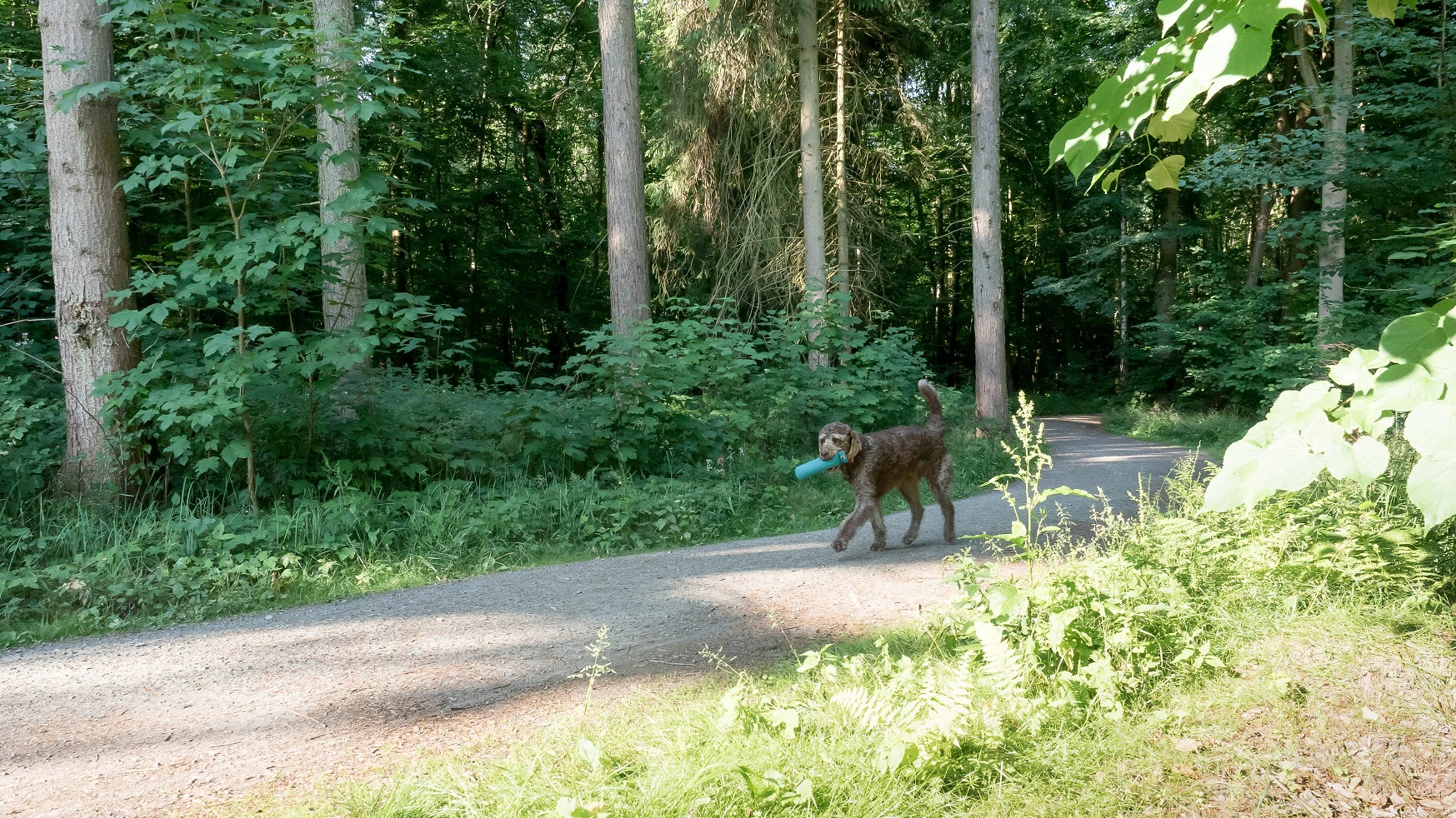 Bobby im Wald: Ohne Schleppleine – dafür mit seinem Lieblingsdummy