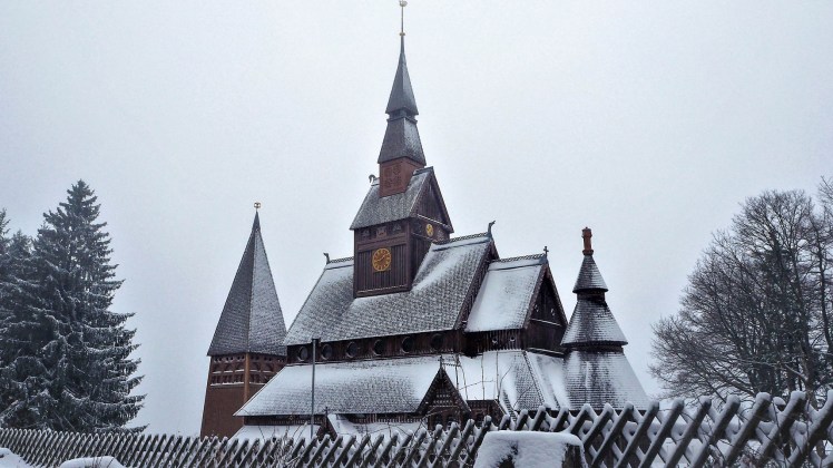 Nein, Stabkirche und Landschaft: Gefunden auf dem Liebesbankweg im Harz.