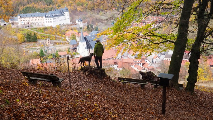 Viele Kilometer fuhren wir mit dem Auto durch den Südharz. Das Wetter spielte mit. Der goldene Herbst zeigte sich von seiner besten Seite. Die riesigen Buchenwälder gaben ein wahres Feuerwerk an Farben ab und die sanft hügelige Landschaft versetzte uns in beste Stimmung. Wir machten viele Spaziergänge, kleine Wanderungen und Sightseeing-Stopps. Jedes Mal landete mindestens ein Stempel der Harzer Wandernadel in Bobbys Stempelheft.