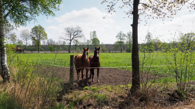 Gerade standen wir an einer riesigen Weidefläche und beobachteten zwei stolze Pferde, die sich uns neugierig näherten. Den Fahrradfahrer bemerkten wir erst als er stehenblieb, um wohl angesichts unserer recht üppigen Tagesrucksäcke zu fragen: „Sind Sie länger hier unterwegs?“ Als er hörte, wo wir herkommen, war er ganz aus dem Häuschen. „Das muss ich nächste Woche in der Kreissitzung erzählen, dass Sie bis aus Braunschweig nach Lüder kommen, um hier zu wandern!“ Er erklärte uns ausführlich den Wegeverlauf zu den weiteren Sehenswürdigkeiten (Angus Rinder und Vogelbeobachtungsstation). Und sogar die Wollgrasblüte kannte er. „Da gehen Sie einfach ein paar Schritte ins Heidemoor, um zu gucken. Das ist zwar verboten, aber wenn Sie vorsichtig sind …“