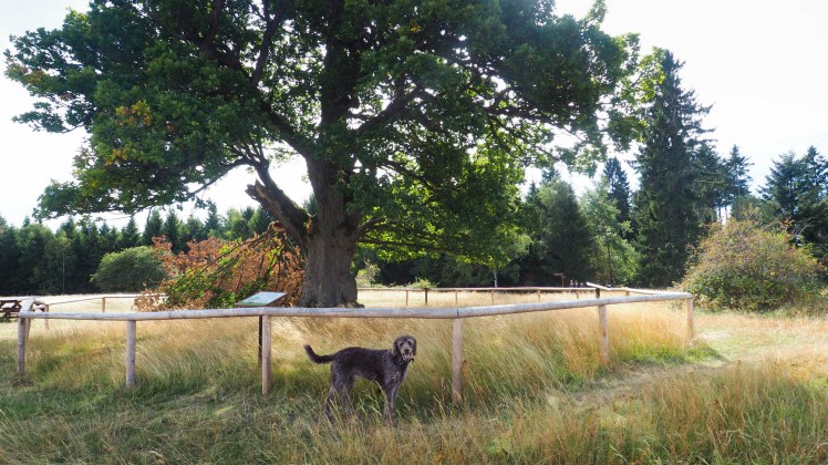 Bis zur Stempelstelle der Harzer Wandernadel am Trudenstein gingen wir auf gut ausgebauten Wegen. Wir begegneten Mountainbikern. Auch diesen gegenüber verhielt sich Bobby ruhig. Ich nahm mir an ihm ein Beispiel und lächelte allen freundlich zu, obwohl mich die vielen E-Biker im Harz wirklich nerven. Aber ich wusste, ab hier geht’s nur noch auf schmalen Pfaden weiter. Diese Wege schafft man mit keinem schweren E-Mountainbike. Während alle anderen den breiten Wegen folgten, bogen wir rechts ab in den Wald Richtung Bärenklippe und Hohnekamm. Bobby war so gut drauf, dass es unmöglich war, sich nicht davon anstecken zu lassen. Er suchte jeden Felsen, um hoch zu klettern, lief Slalom um Hindernisse und hüpfte wie ein Hürdenläufer über umgestürzte Bäume. Er gab die Richtung vor. Er fand den Weg, ohne dass wir auf Wegweiser hätten achten müssen. Wie oft bin ich in der Vergangenheit furchtlos voran gegangen und er ist mir gefolgt. Heute ist er es, der mich mitreißt.