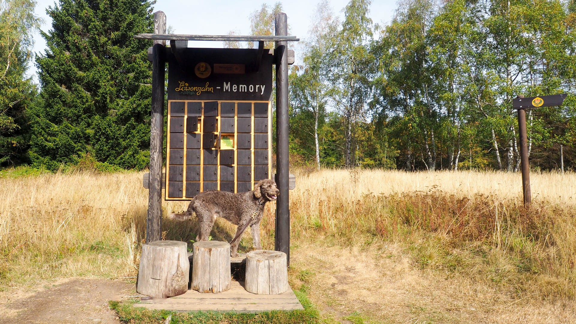 In Drei Annen Hohne, an der Bahnstation der Harzer Schmalspurbahn, starteten wir unsere Runde und meine Planung schickte uns direkt auf den Löwenzahnpfad, ein Walderlebnisweg für Kinder. Kaum dachte ich wiederum ängstlich an tobende Kinder und an einen wild kläffenden und in die Leine springenden Bobby, da trafen wir auch schon die erste Familie. Die Kinder waren konzentriert damit beschäftigt, die riesige Wurzel eines umgestürzten Baumes zu untersuchen. Hinweisschilder erklärten, was dort lebt und wer da wohnt. Bobby kümmerte sich nicht um die Kinder. Die Kinder kümmerten sich nicht um Bobby, Viel zu spannend war für beide Seiten das, was es in der Natur zu entdecken gab. Ich fing an, diesen Weg zu genießen.