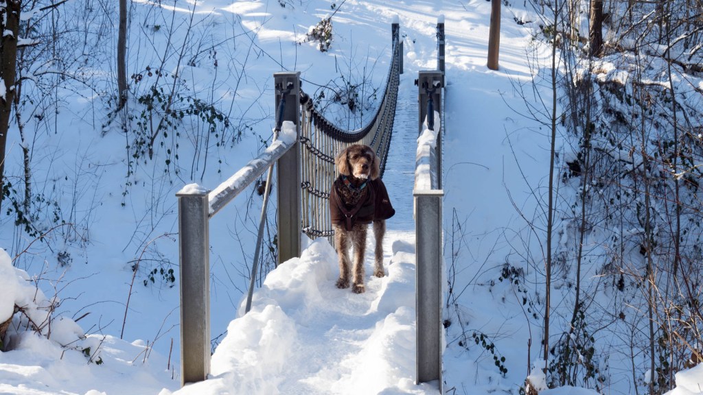 Bobby und ich stapfen durch den Schnee, der hier auf dem Mammutbaumweg bereits gut gespurt ist und das Gehen somit nicht ganz so anstrengend ist. Mein Hund hat die Nase am Boden. Manchmal hebt er sie witternd hoch in die Luft. Das macht er in tiefen, dichten Wäldern wie diesen, in dem die Sonne gerade wieder durch die Bäume blitzt und den Schnee funkeln lässt, oft. Was ich sonst nur erahnen kann, ist jetzt im Winter unübersehbar. Überall sind Spuren, die teilweise wie breite Schneisen in den Wald führen. Es gibt hier jede Menge Wild und Bobby ist in höchster Anspannung. Ab und zu dreht er sich um und schaut in die Richtung, in die Wolfgang noch mal zurück zum Auto gegangen ist, da er dort sein Portemonnaie vergessen hatte. Ein paar hundert Meter weiter an der Hängebrücke am Indianerpfad haben wir vereinbart, uns wieder zu treffen. Dass mir die Zeit bis zu unserem Wiedersehen wie eine Ewigkeit vorkommen wird, ahne ich in diesem Moment noch nicht. Ich blicke hoch in die Baumriesen und genieße die herrliche Winterstimmung im Arboretum WeltWald bei Bad Grund auf einer meiner Lieblingsrunden im Harz.