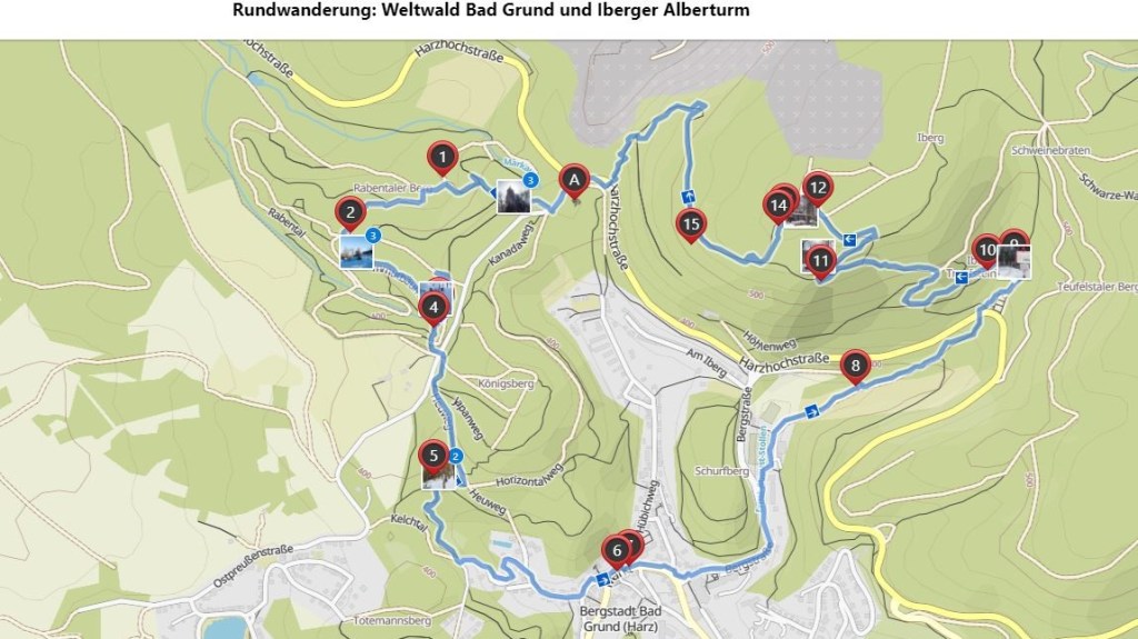 Hier geht es zu meiner Komoot-Aufzeichnung mit GPS-Daten (anmelden ist nicht nötig, einfach runterscrollen): Rundwanderung WeltWald Bad Grund und Iberger Albertturm (HWN 129 und HWN 130)