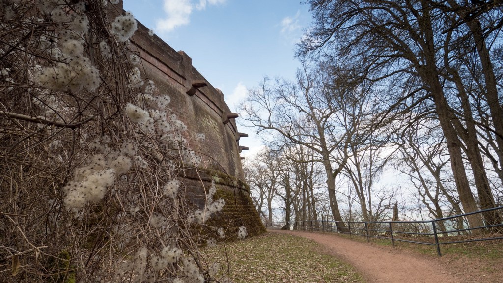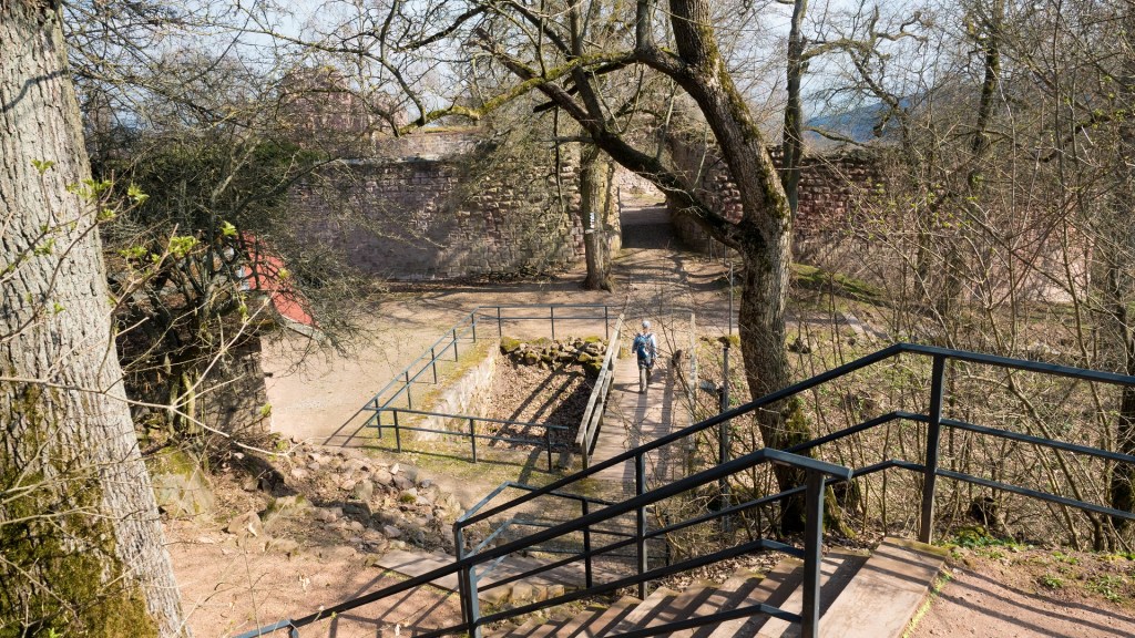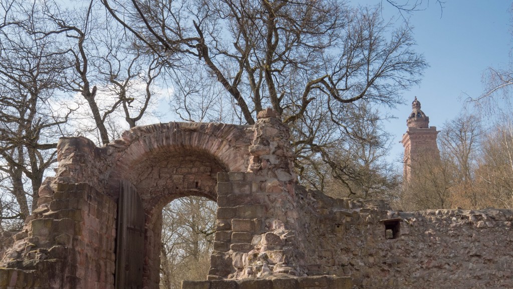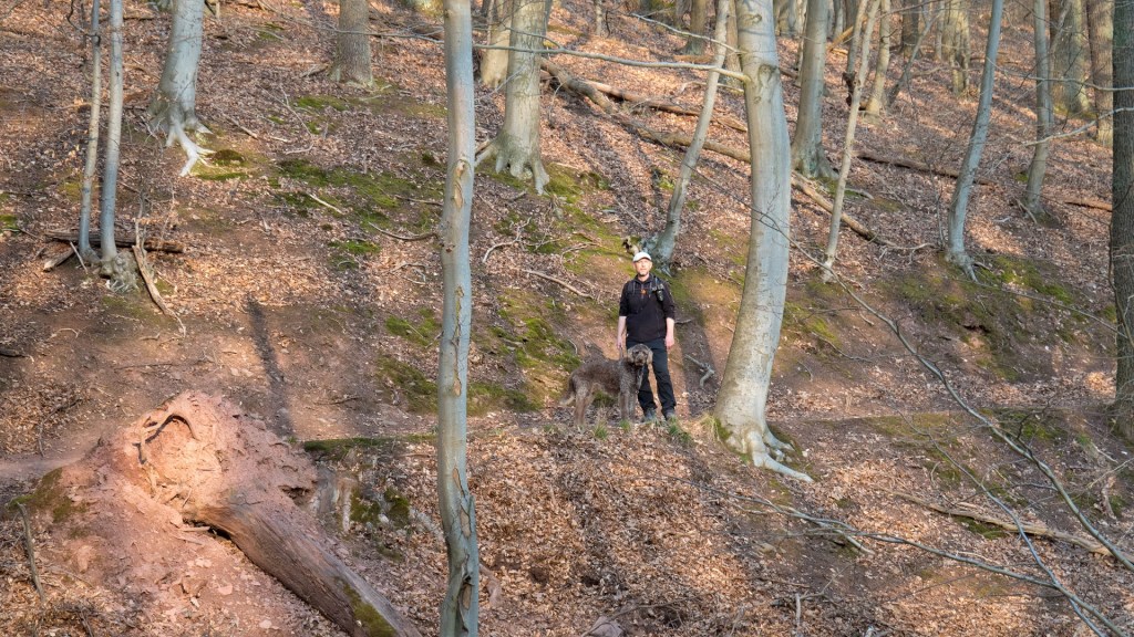 Wir erreichen unser nächstes Zwischenziel, die Rothenburg. Schon auf der Hinfahrt konnten wir die Türme hoch oben aus dem Wald aufragen sehen. Nun stehen wir vor einem Bauzaun. Solche Absperrungen stoppen mich eigentlich nie sofort, sondern lassen mich erst mal nach Ausweichwegen Ausschau halten. So stiefeln wir auf einem schmalen Trampelpfad um die Bauzäune herum bis sich dieser im Wald verliert und ich aus den Augenwinkeln eine Person ausmache, die uns von der anderen Seite des Zaunes aus beobachtet. Wir drehen um und die Person geht parallel zu uns in die gleiche Richtung. Irgendwann treffen wir diesseits und jenseits des Zaunes aufeinander. Vielleicht kann er uns etwas zur Rothenburg erzählen? Er konnte: