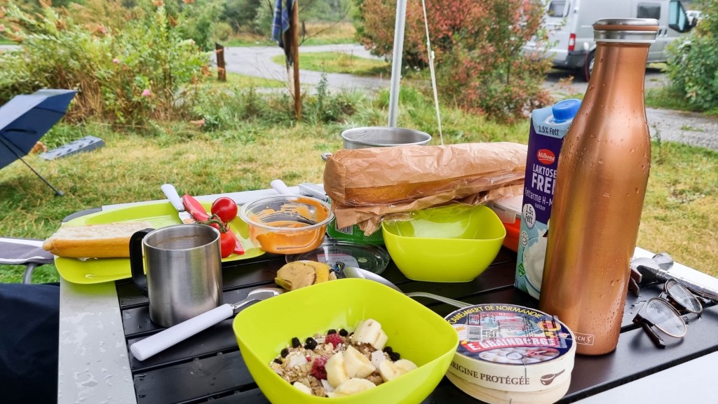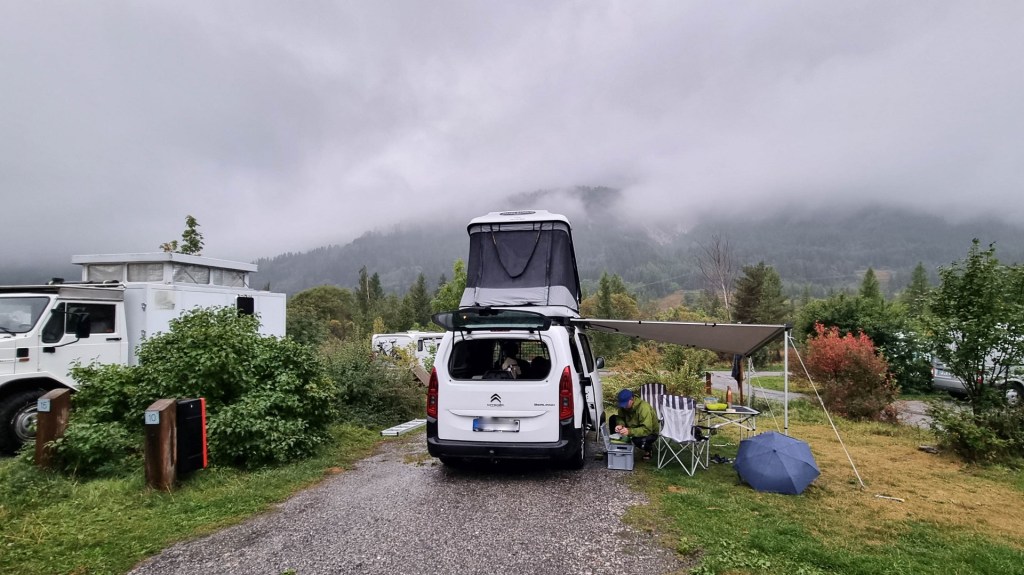 Während des Frühstücks vor unserem kleinen Campingmobil wunderte ich mich, dass ich nicht genervt bin: von dem Wetter, dem Matsch um uns herum, den klitschnassen Sachen, die wir gestern vergessen hatten ins Auto zu packen. Wir saßen mitten in den französischen Seealpen, die eigentlich die Hochalpen sind und alles war genau richtig so. Ich wollte nicht gegen ein trockenes Hotel mit Frühstücksbuffet und Wellnessbereich tauschen.