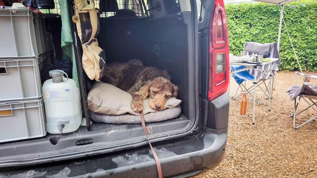 Wir waren wie beseelt von diesem Ort und dachten trotz des angesagten Regens und mehrerer Gewitter nicht daran, die Markise als Regenschutz aufzuklappen. Nachts wachte ich vom prasselnden Regen auf. Es blitze und ich zählte die Sekunden bis der Donner folgte. Keine Gefahr, entschied ich. Ich muss nicht in das Auto wechseln, wo Bobby als einziger völlig sicher vor einem Blitzeinschlag lag. Ich schlief wieder ein, um dann erneut durch ein mächtiges Krachen aufzuwachen. Ich sah auf die Uhr. Es war vier Uhr morgens. Die Wetter App hatte genau für diese Uhrzeit in (weiteres) Gewitter angekündigt. Jetzt erinnerte ich mich daran, worüber ich gestern Abend nicht nachdenken wollte. Ich zählte wieder: Diesmal waren es drei Sekunden zwischen Blitz und Donner. Weit genug weg, entschied ich erneut und hörte dem Regen und dem Grollen des Gewitters zu, bis ich wieder einschlief.