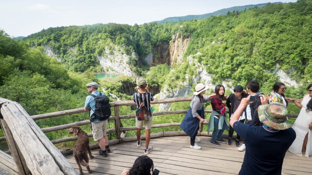 Irgendwo habe ich gelesen, dass um die 1.000.000 Menschen jährlich die Plitvicer Seen besuchen. Und natürlich wird es hier in der Hauptsaison im Juli und August besonders voll. In diesen Zeiten reisen wir schon allein wegen der Hitze sowieso nie in den Süden. Allgemein lohnt es sich aber an allen sogenannten „Hotspots“ – gerade mit Hund – möglichst antizyklisch unterwegs zu sein. Viel Zeit mitbringen (mindestens zwei Nächte vor Ort bleiben), auf „Umwegen“ und vermeintlich nicht so spektakulären Wegen die Highlights ansteuern (Wandern statt Bus oder Boot fahren), sich autark machen von Gastronomie und Wetter (Essen, Trinken und Regenkleidung einpacken), flexibel in der Planung bleiben (z.B. mit dem Taxi fahren) und insbesondere die Abendstunden nutzen – das sind unserer Erfahrung nach die Schlüssel für entspannte Besuche – auch mit Hund – an Touristenmagneten wie den Nationalpark Plitvicer Seen. Extra-Tipp für den schnellen Besuch: Es gibt es sogar ein vergünstigtes Abendticket ab 16 Uhr!