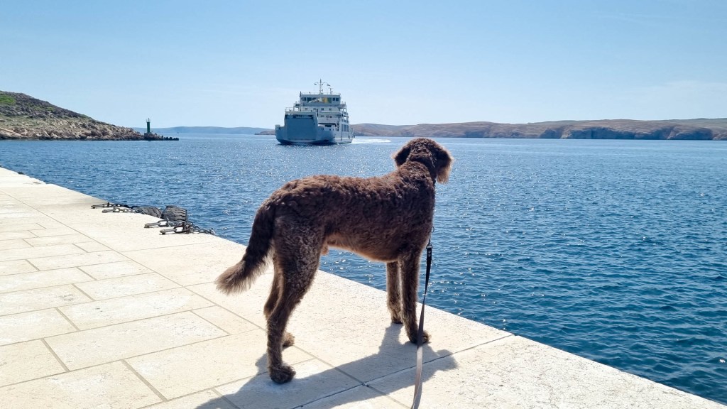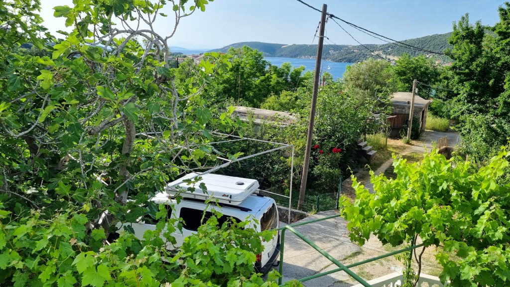 Am nächsten Tag packen wir unser Dachzelt ein. Wir dürfen einen Tag früher in unser gebuchtes Ferienhaus auf der Insel Rab einziehen. „Kein Problem“ sagte Marika, unsere Vermieterin, am Telefon. Wir fahren Richtung Adria, überqueren das karge Velebitgebirge und erreichen den Hafen von Stinica, wo die Fähre nach Rab übersetzt. Ein paar Stunden später sitzen wir auf der Terrasse unseres Ferienhauses oberhalb der Ortschaft Supertarska Draga – mit gelben Gingsterhängen im Rücken und dem Meer vor Augen. Ein paar Hähne krähen um die Wette. Wir tun Nichts. Und das tut gerade richtig gut.