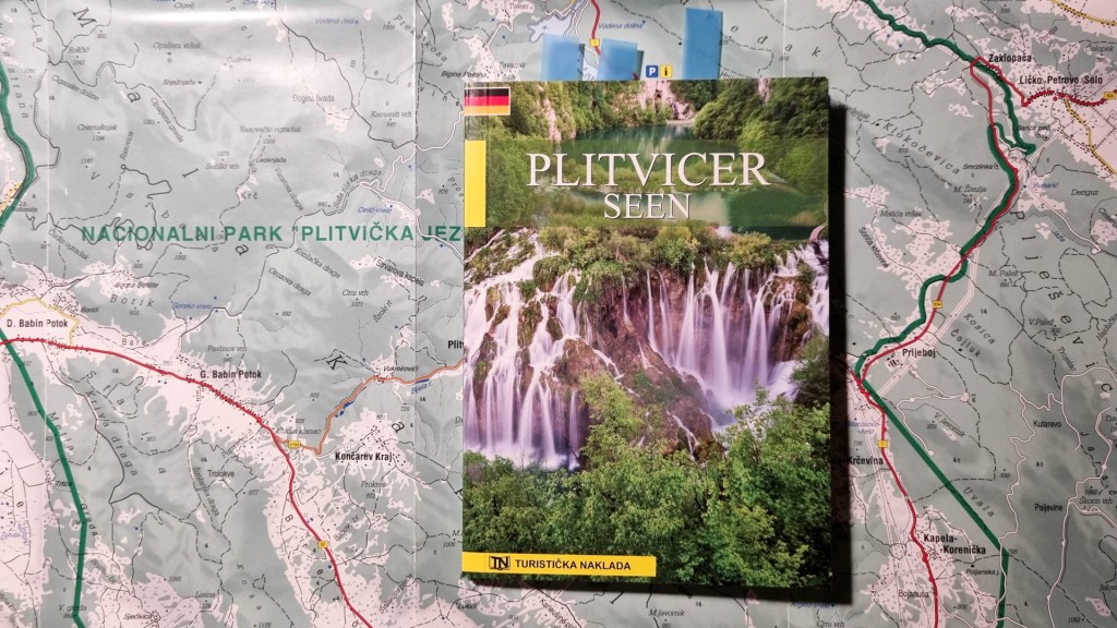Die Karte mit den 8 offiziellen Besichtigungsprogrammen bietet einen guten Überblick über die Seen und die Umgebung . Das „kleine Büchlein“ zu den Plitvicer Seen fand ich auch recht interessant. Die Wanderkarte mit den 2 Hiking Trails gibt es auf Nachfrage im Infocenter umsonst. Aber auch im Internet findet man auf der offiziellen Seite des Nationalparks gute Hinweise zu den verschiedenen Wanderrouten, Informationen über die Flora und Fauna und natürlich zu den Preisen und Öffnungszeiten.