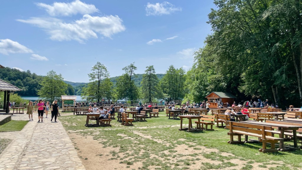 Bald erreichen wir den Bootsanleger mit den großen Schnellrestaurants am Kozjak See. Und eins wussten wir schon von unserem letzten Besuch: Nun wird es ruhiger und einsamer.