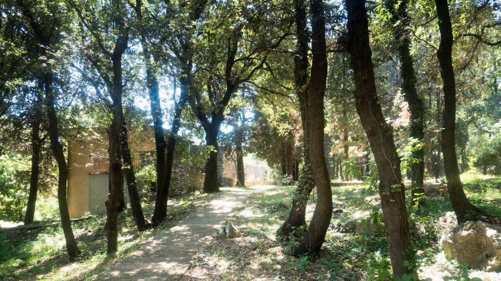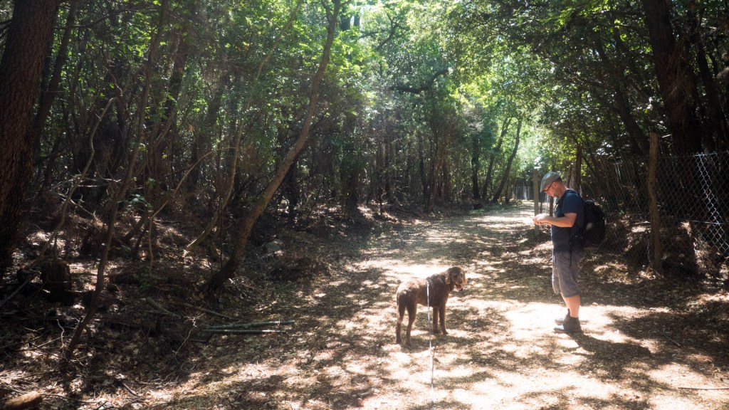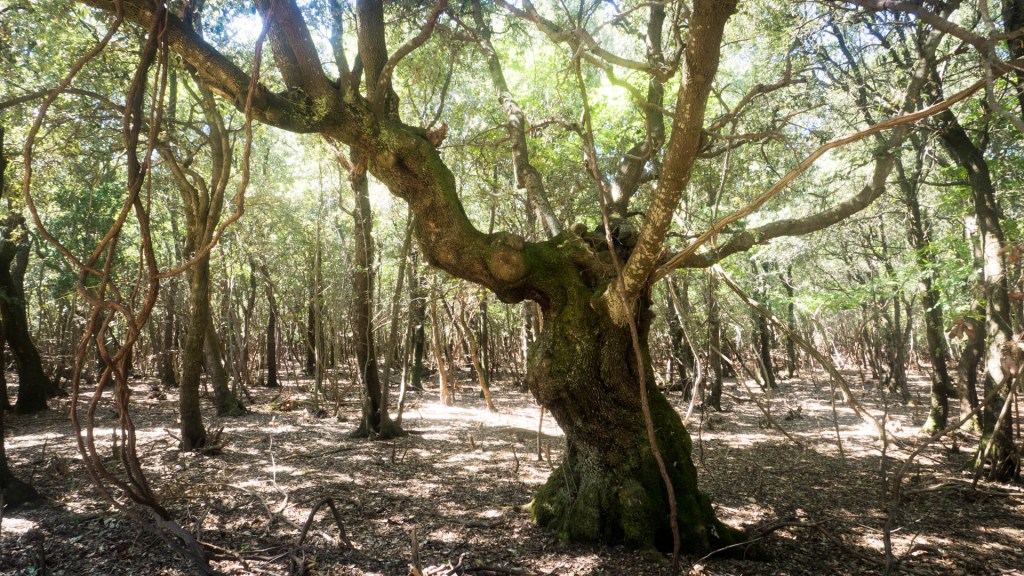 Eines der Wanderhighlights auf Rab ist der „Dundo“, einer der mittlerweile selten gewordenen Steineichenwälder. Auf der Halbinsel Kalifront, die an ihrer Küstenlinie mit etlichen versteckten Badebuchten lockt, führt der der 15 Kilometer lange Lehrpfad Capo Fronte durch diesen besonderen Wald. Die Äste der immergrünen Bäume erinnern beinahe an eine Art Schlingpflanze – dicht und lichtarm sind die Charakteristika dieser Wälder. Schön schattig aber auf Dauer etwas langweilig – das ist unser Resümee nach ein paar Kilometern auf einem breiten Forstweg – und wir brechen die Wanderung ab.