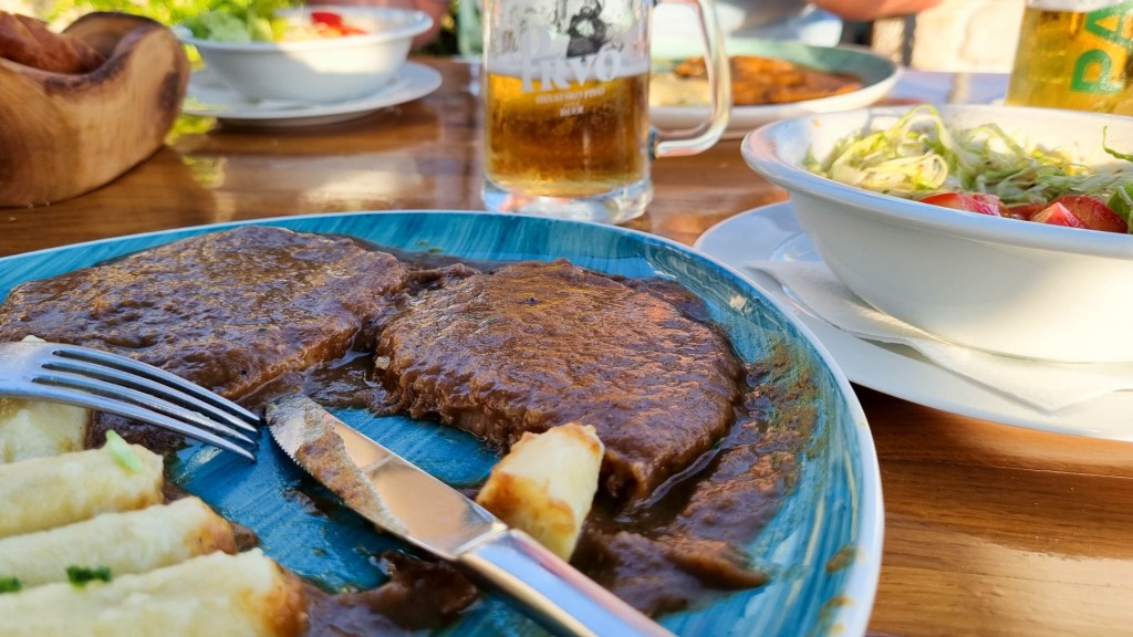 Einen kurzen Moment dachte ich an die Nachrichten, die ich seit der Coronapandemie und nun mit dem schrecklichen Krieg mitten in Europa, ständig auf allen möglichen Kanälen verfolge, wahrscheinlich von der absurden Hoffnung getrieben, unmöglich Begreifbares irgendwann verstehen zu können. Seit gut einer Woche sind wir unterwegs, über Salzburg mit Zwischenstopps in den wilden slowenischen Alpen und dem märchenhaften Nationalpark Plitvicer Seen. Der Blick auf das Handy diente seitdem nur der Navigation oder der Wettervorhersage. Keine Nachrichten von Toten und Gefallenen. Keine Diskussionen über Kriegsstrategien und Waffenlieferungen. Keine täglich neuen Krisenankündigungen. Keine zermarternden Fragen nach dem Warum. Ich vermisste Nichts. Die Welt ist unbegreifbar. Schön.