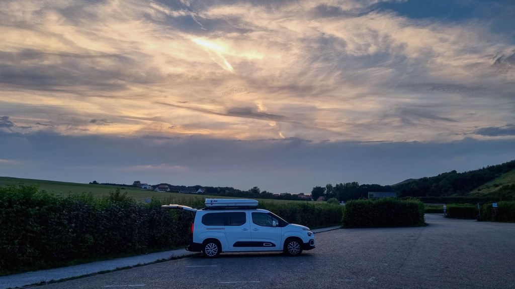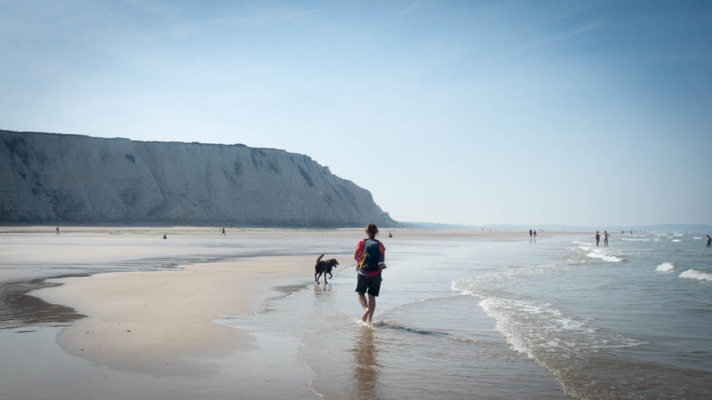 Ganz anders als vor fünf Jahren, wo wir beinahe auf den Tag genau, Anfang September, auch an der Côte d’Opale waren, um von Calais aus nach England rüber zusetzen, quillt das kleinen Örtchen Escalle an diesem Abend beinahe über vor Menschen. „Complet. Tout le week-end.“ sagt der sichtlich überforderte Chef des Campingplatzes Côte d’ Opale Blanc Nez und verweist auf das hochsommerliche Wetter an diesem Wochenende. Zwei Nächte wollten wir hierbleiben, bis am Sonntag unsere Fähre nach Dover geht. Wir hatten nicht damit gerechnet, nichts reserviert und zudem sind wir viel zu spät dran. Der zweite Campingplatz vor Ort: ebenfalls „complet“. Es dämmert bereits als wir an einem Parkplatz anhalten (natürlich ist hier übernachten verboten), um mit Bobby eine Runde zu drehen. Zu gerne hätte ich heute noch über das Meer Richtung Großbritannien geblickt. Wir buchen während des Spaziergangs eines der letzten bezahlbaren Hotelzimmer in Calais.