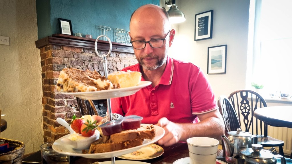 Die ersten Tage in Conwy waren so regnerisch, dass an eine Wanderung in den Bergen gar nicht zu denken war. So waren wir oft auf der Stadtmauer sowie in den schmalen Gassen der belebten Innenstadt von Conwy unterwegs. Wir besuchten Sehenswürdigkeiten, wie das kleinste Haus Großbritanniens, dessen letzter Bewohner kurioserweise 2 Meter groß war und das mächtige Conwy Castle, das zu den am besten erhaltenen mittelalterlichen Burganlagen Europas zählt. Nachmittags saßen wir zum 5 a’clock tea vor riesigen Etageren mit Sandwiches, Cakes und Scones und am Abend im Pub am kleinen Hafen vor frischgezapftem Pale Ale.