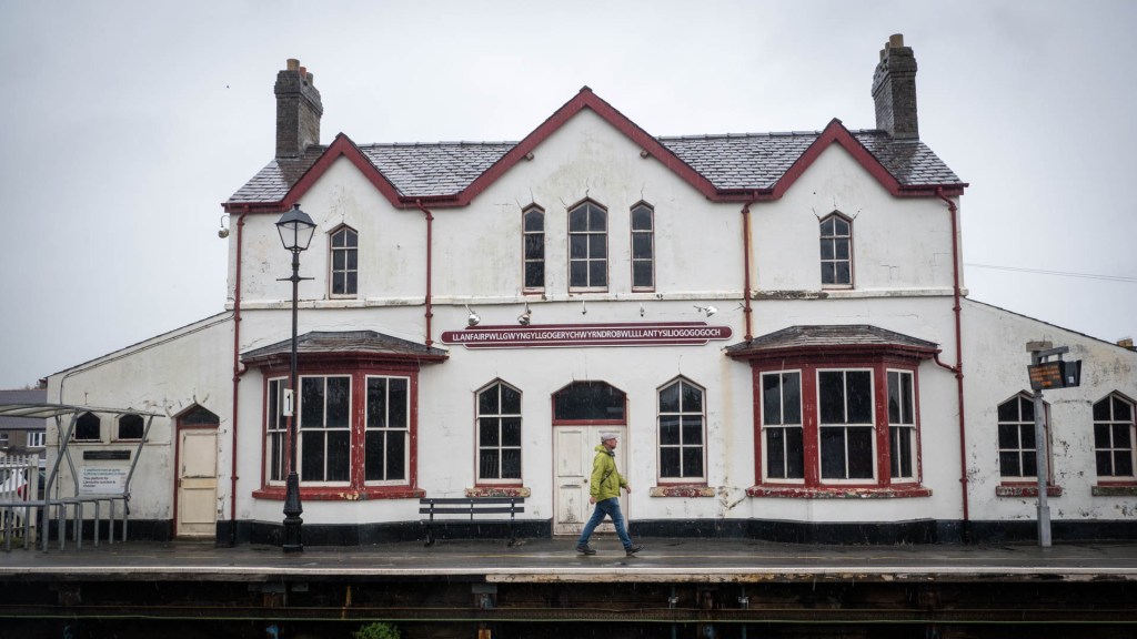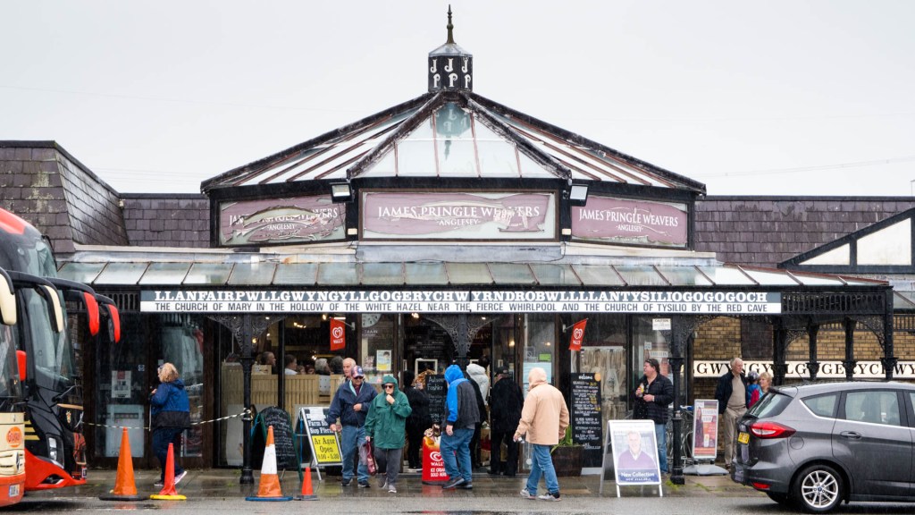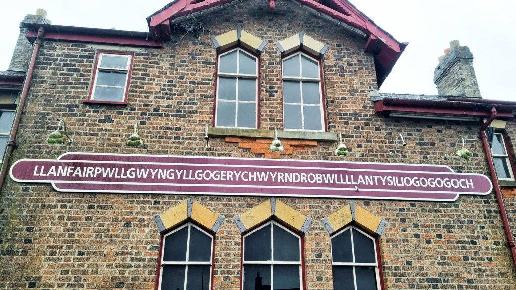 Auf dem Rückweg von Holy Head regnete es immer noch, als wir einen Zwischenstopp in Llanfairpwllgwyngyllgogerychwyrndrobwllllantysiliogogogoch einlegten. Wales hat die Ortschaft mit dem längsten (zusammenhängenden) Ortsname der Welt zu bieten – ein „Werbegag“ aus dem 19. Jahrhundert, der funktioniert: Reisebusse und jede Menge Touristen drängten sich um das Besucherzentrum am berühmten Bahnhof der ansonsten eher trostlosen Ortschaft.