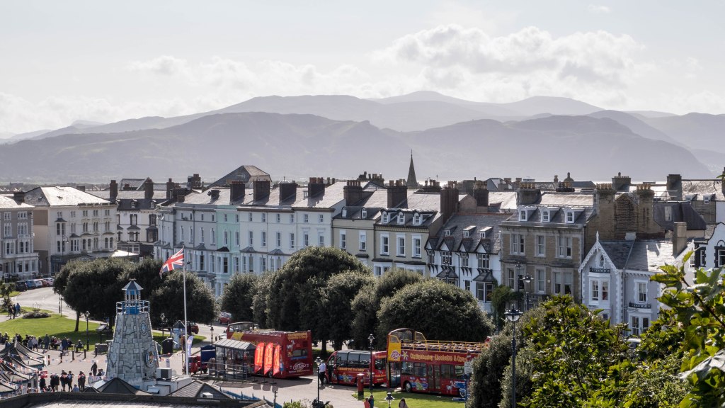 Der nächste Tag begrüßt uns mit strahlendem Sonnenschein – ein perfekter Wandertag – eigentlich. Aber uns ist nach nichts als Sonne genießen und die Beine möglichst wenig bewegen. Und das kann man ganz wunderbar in Llandudno, dem Nachbarort von Conwy. Wir flanieren entlang der Promenade des alten Seebades, wo sich die viktorianischen Stadthäuser aneinanderreihen.