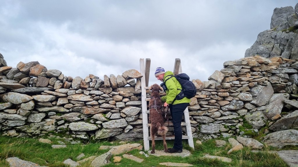 Den Hinweis: „Unterschätze nicht den Snowdonia Nationalpark“ sollte man tatsächlich ernst nehmen. Bereits auf wenigen Höhenmetern hat die Landschaft Hochgebirgscharakter. Plötzliche Wetterumschwünge sind keine Seltenheit. Dichte Wolken, Regen oder Nebel können die ohnehin recht schwierige Orientierung in dem oftmals sehr unwegsamen Gelände erschweren. Immer wieder sind auch Mauern oder Zäune zu überklettern, die für Hunde ein unüberwindbares Hindernis darstellen können. Schafe sind permanente Begleiter auf Wanderungen im Eryri Nationalpark. Eine allgemeine Leinenpflicht gibt es nicht. Hunde sollen aber (selbstverständlich) immer in Sichtweite auf den Wegen und unter Kontrolle sein. Man sollte sich am besten vor Ort informieren, welche Wanderungen mit Hund geeignet sind. In unserem Ferienhaus lag ein Wanderführer mit insgesamt 20 verschiedenen „dog walks“ im Snowdonia, in dem auch geeignete Aufstiegsrouten mit Hund auf den Snowdon aufgeführt waren.
