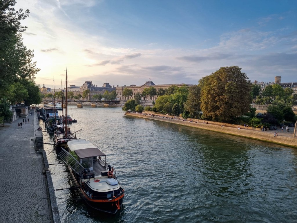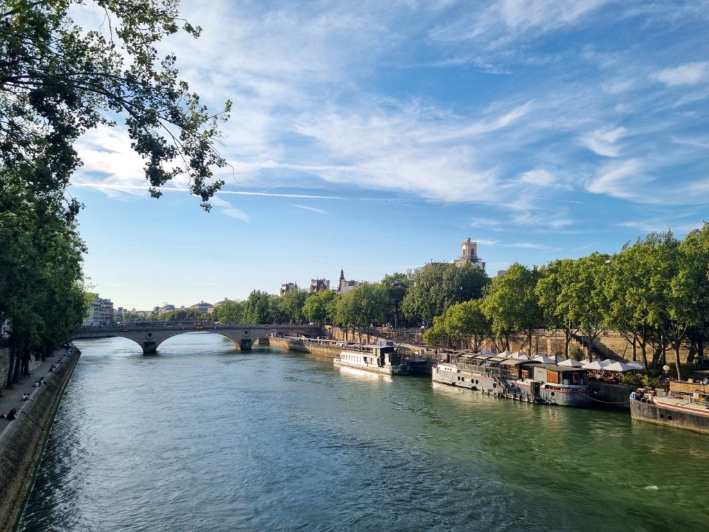 Immer wieder landeten wir aber an der Seine. Wir saßen am Ufer, ein kleines Fläschchen Rotwein oder Champagner (man gönnt sich ja sonst nichts) und einen Snack aus dem Supermarkt im Gepäck. Dann beobachteten wir die vorüberziehenden Ausflugsboote, auf denen die Passagiere jedes Mal lauthals kreischten, wenn sie unter einer besonders niedrigen Brücke durchfuhren. Der Scherz des Kapitäns schien jedes Mal auf Neue aufzugehen.