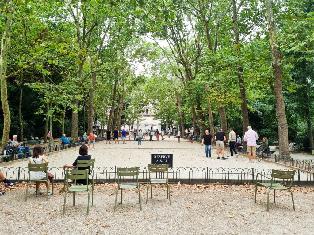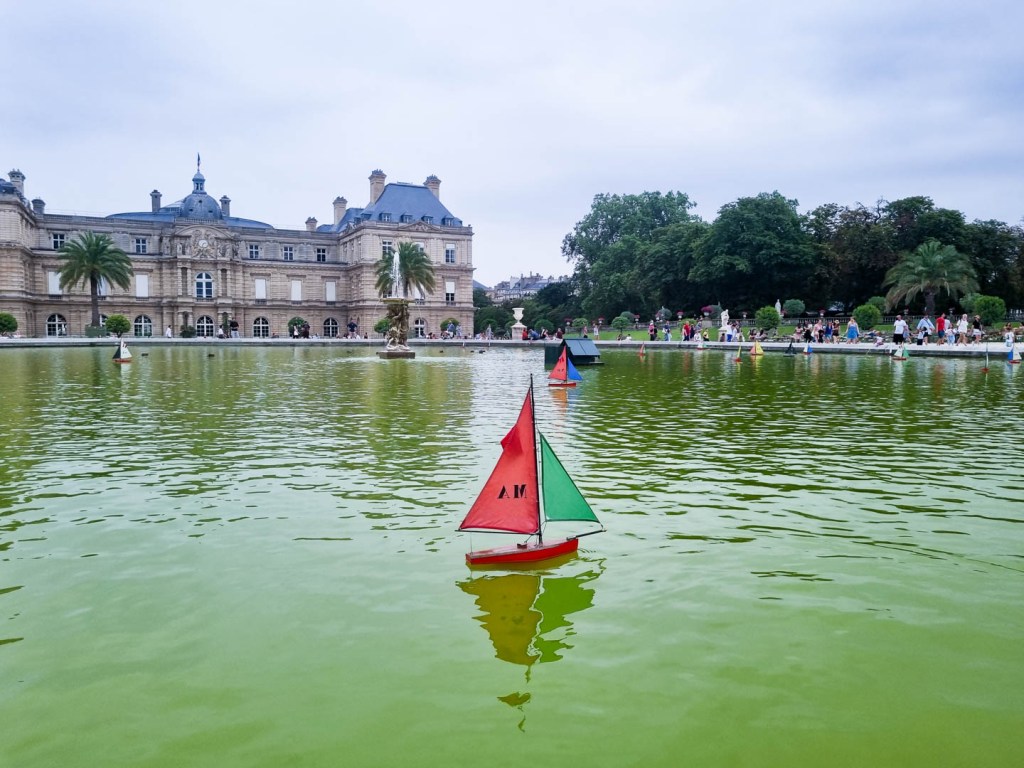 Gleich um die Ecke von unserem Appartement, im Jardin de Luxemburg sahen wir den Kindern zu, wie sie kleinen Segelbooten, die man dort ausleihen konnte, mit ihren Stecken Schwung verliehen und dann taten wir, was viele Pariserinnen und Pariser machen: uns auf zwei der unzähligen dort herumstehenden Stühle setzten, entspannen, lesen, beobachten, nicht tun.